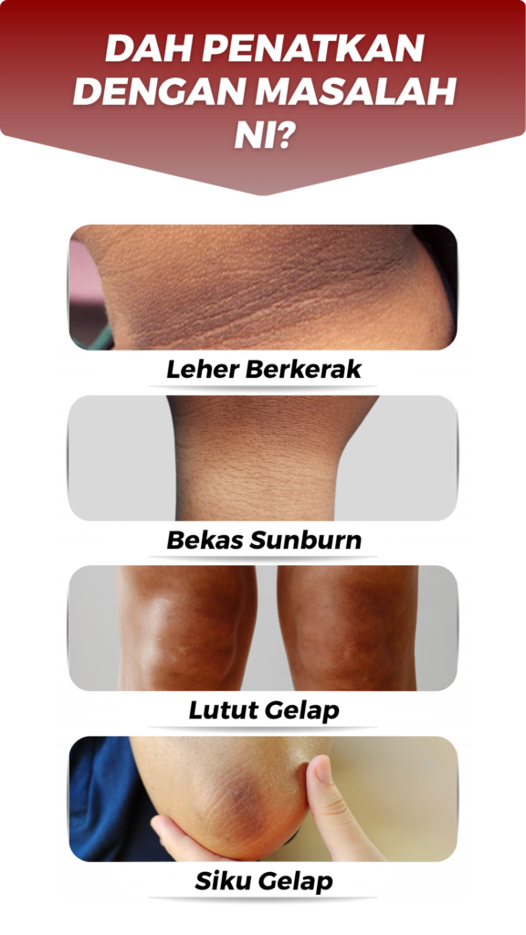 Sapu secukupnya pada kulit bersih, urut perlahan hingga meresap. Fokus pada bahagian gelap seperti ketiak, siku & lutut.