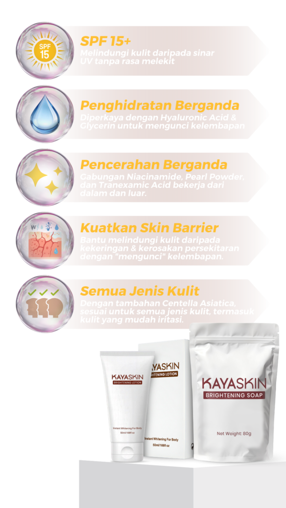 Kayaskin lebih kepada brightening & even skin tone, bukan tukar warna kulit asal. Hasilnya nampak natural & sihat.